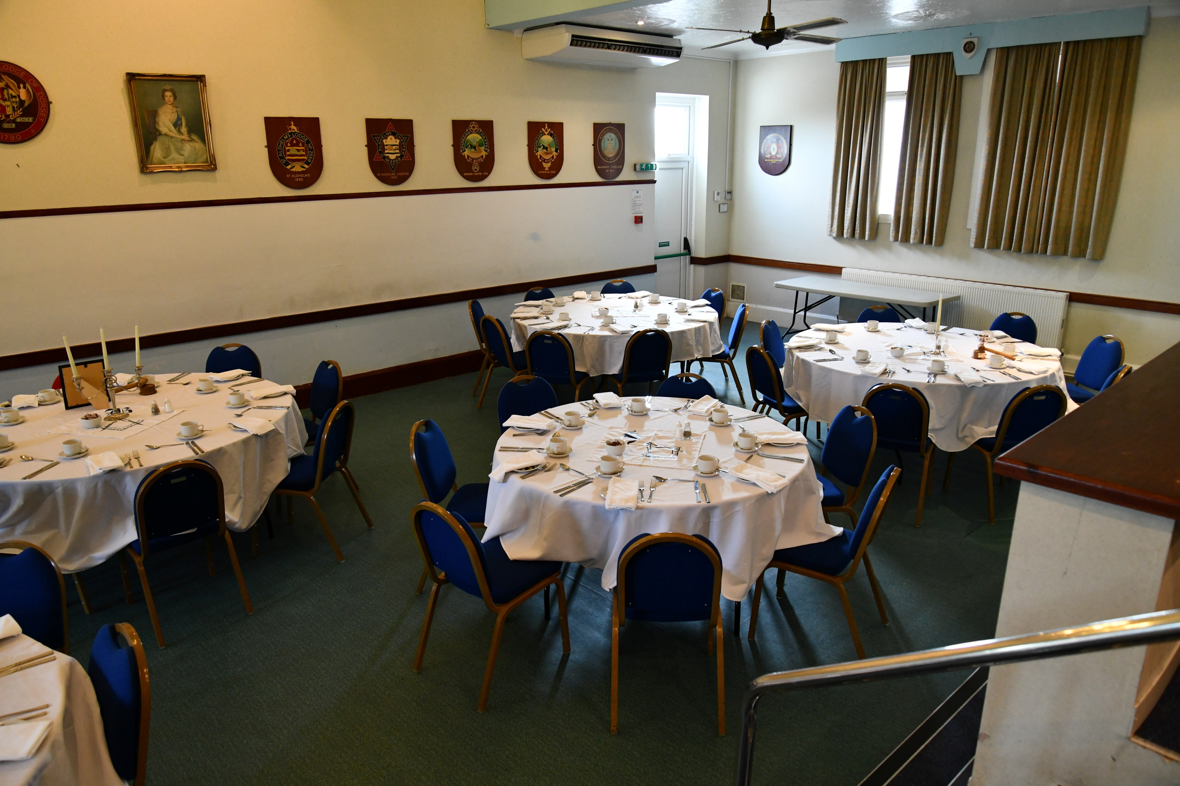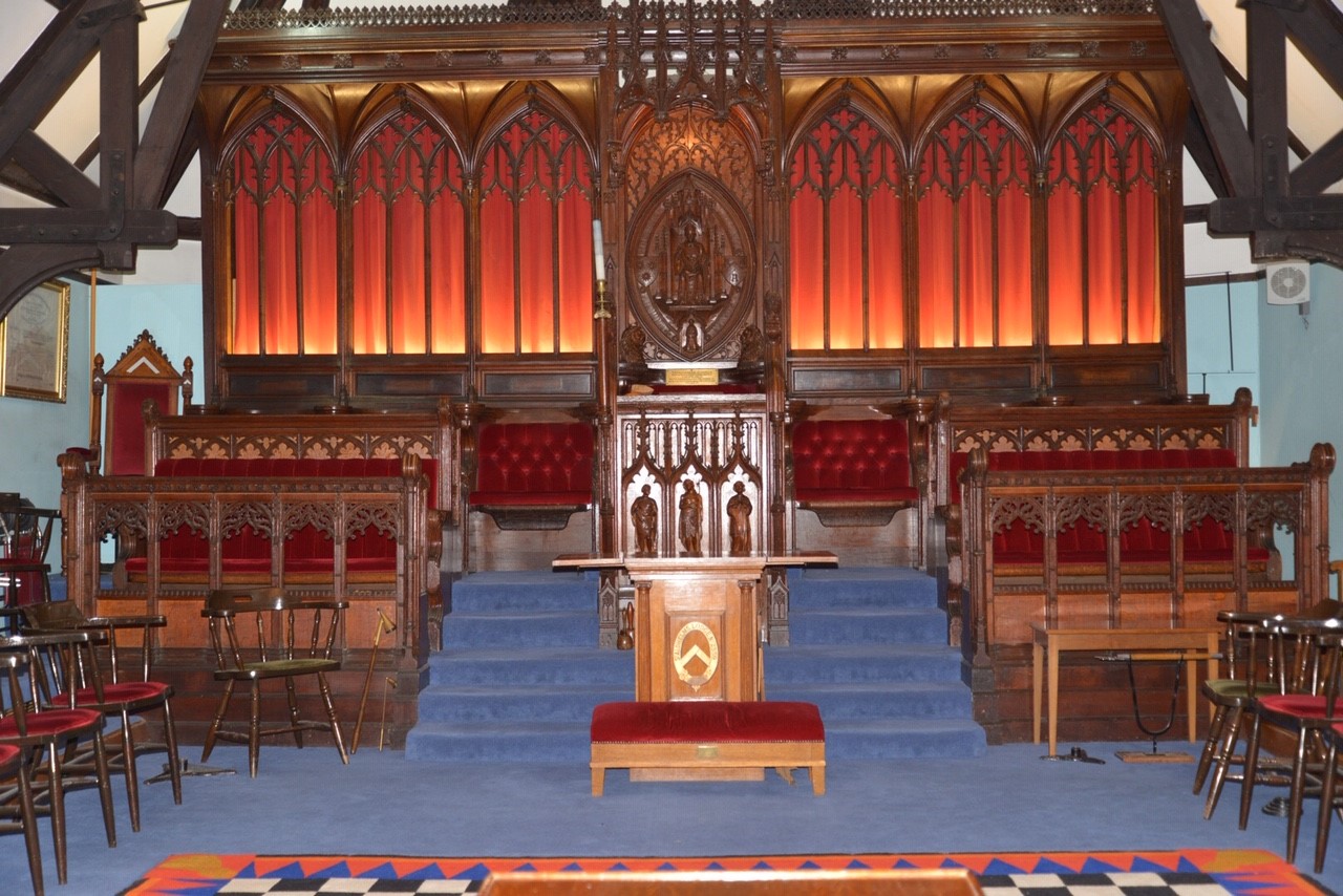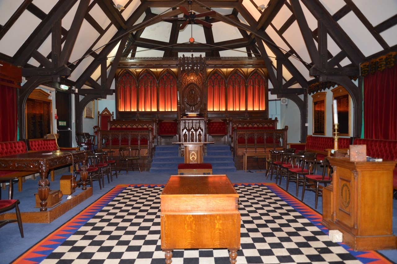 Function room available for hire Facilities offered by the hall Branksome Masonic Hall is conveniently located at 57 Ashley Road, Poole, BH14 9BT. It is situated on local bus routes and five minutes’ walk from Branksome Railway Station and a 'National Express' coach stop. There is ample, free parking at the rear of the building. This historic former chapel has a spacious dining area, which comfortable seats 90 people. Rectangular and round tables are available depending on the intended activity or preference. Adjoining the dining area is a comfortable reception/licensed bar area. There is a fully equipped kitchen, a small and large robing room and toilets. The Dorset Provincial Museum is also housed on the ground floor. Upstairs is the beautiful Masonic Temple which can be accessed by a staircase or a lift.